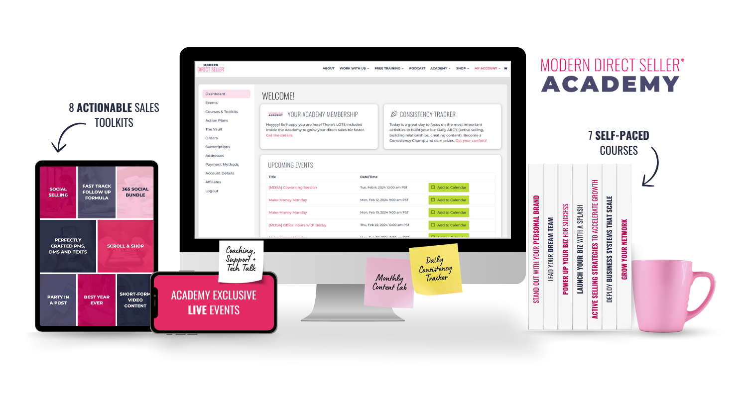 I want to sneak into the Modern Direct Seller Academy, too! Since you are getting some products from our shop, you're invited to join us -- and, take 35% off your first month in the Academy!
