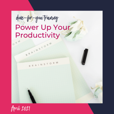This month’s bundle includes a done-for-you training on Powering Up Your Productivity. Also, you will receive access to the April social media graphics bundle as well as the Guest Masterclass with Kari Roberts on Time Management.