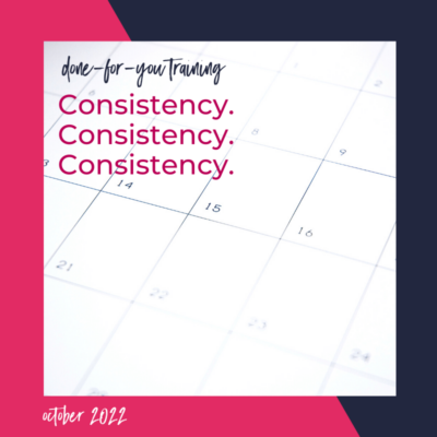 This month’s bundle includes a done-for-you training on Consistency. Consistency. Consistency. You will also receive access to the October social media graphics bundle as well as the Guest Masterclass.