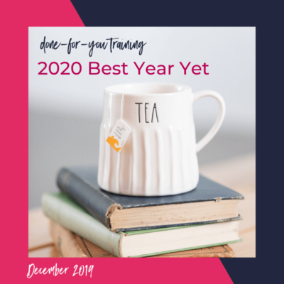 Ironically, this done-for-you training was titled, 2020: Best Year Yet! The training walks you through step-by-step what to review from the previous year, goal setting for the new year and how to create a Q1 action plan. Workbook is included!