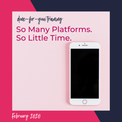 Overwhelmed by showing up in all the places, all the time? This done-for-you training includes strategies to re-purpose, recycle and re-use content across all platforms making social media posting easy breezy.