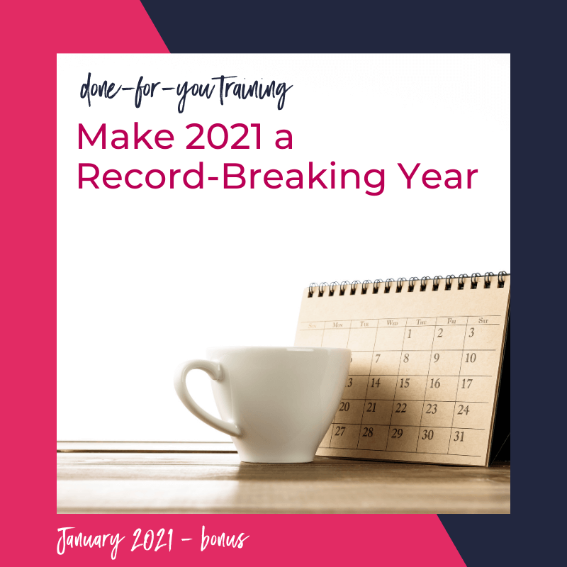 This January bonus includes the done-for-you training, Make 2021 a Record-Breaking Year. A complimentary workbook is included with the training.